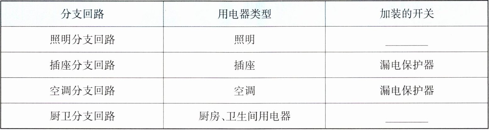 问题4 1.电能表 总开关(含保险装置) 插座 2.相线、中性线 220 V 进户线 电能 相线 相线 并联 3.空气开关 漏电保护器