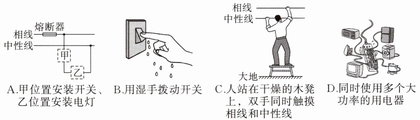 C.人站在干燥的木凳上,双手同时触摸相线和中性线