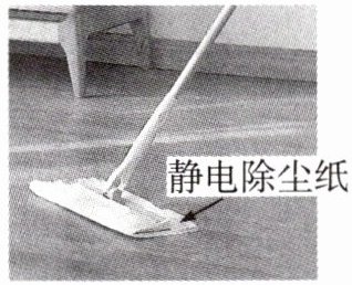 8. 下图是装有静电除尘纸的拖把,扫地时除尘纸与地板摩擦就可以轻松地将灰尘和头发清扫干净。这是因为除尘纸与地板之间发生了