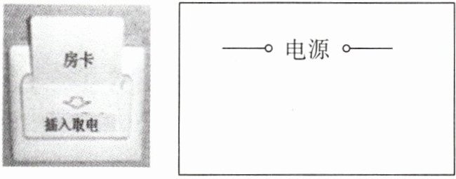 9. 如图所示,将房卡插入取电盒时,房间内的一盏电灯发光。请在方框内完成此电路的电路图。