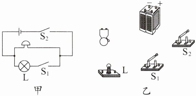 4. 根据图甲所示的电路图连接图乙中的实物元器件。