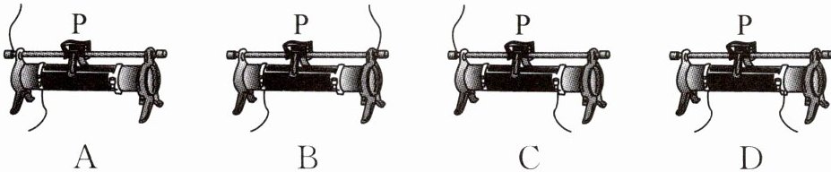 【典型例题 4】如图所示,给出滑动变阻器四种接入电路的结构示意图。其中,当滑片 P 向左滑动时,连入电路中的电阻变大的接法是(