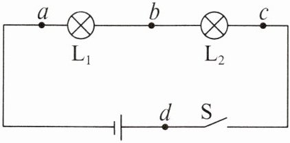 【典型例题 3】在电学实验中,遇到电路故障时常用电压表来检测。如图所示,电源电压恒为 $4.5V$,闭合开关后两灯均不亮,用电压表先后测得 $a$、$d$,$a$、$c$ 和 $a$、$b$ 两端的电压均为 $4.5V$,则故障可能是(