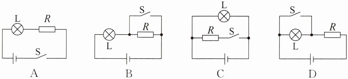 (4)为了提醒驾驶员汽车后备箱的开、关情况,汽车上设置了“后备箱指示灯”。后备箱关好,相当于闭合开关,指示灯不亮;后备箱未关好,相当于断开开关,指示灯发光,下列电路图符合要求的是______(填选项字母)。