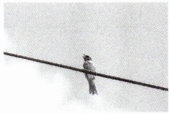 7. 如图所示,小鸟双脚立在某高压输电线的同一根导线上。每1km高压输电线的电阻为$0.3\Omega$,通过输电线的电流是300A。如果小鸟两爪间的距离是4cm,小鸟身体的电阻约为$1000\Omega$,则输电线上的小鸟两爪间的电压约为