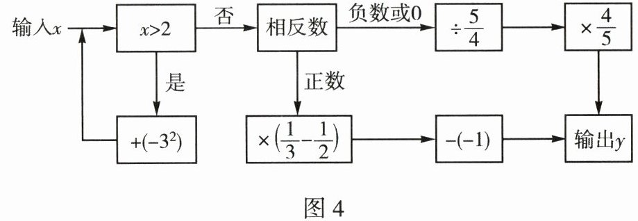17.当输入的数x是$\frac{3}{2}$时,$\frac{3}{2}$<2,$\frac{3}{2}$的相反数是$-\frac{3}{2}$,$-\frac{3}{2}$<0,y=$-\frac{3}{2}$÷$\frac{5}{4}$×$\frac{4}{5}$=$-\frac{3}{2}$×$\frac{4}{5}$×$\frac{4}{5}$=$-\frac{24}{25}$;
