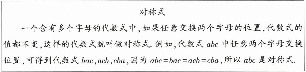 (2)写出一个只含有字母$x$,$y$的单项式,使该单项式是对称式,且次数为6: