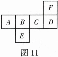 5. 已知正方体的表面展开图如图11所示,如果正方体的六个面分别用字母A,B,C,D,E,F表示,当各面上的数分别与它对面上的数互为相反数,且满足B=1,C=-a²-2a+1,D=-1,E=3a+4,F=2-a时,求A面上的数。