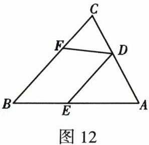 14. 如图12,DF平分∠CDE,∠CDF=55°,∠C=70°,则DE与BC的位置关系是