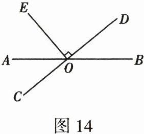 17. (9分)如图14,直线AB,CD相交于点O,OE⊥CD于点O,∠BOD=40°.求∠AOE的度数.