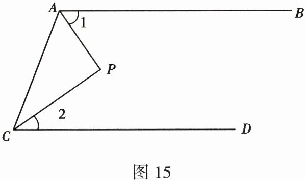 18. (9分)如图15,AP平分∠BAC,CP平分∠ACD,∠1+∠2=90°.判断AB,CD是否平行,并说明理由.