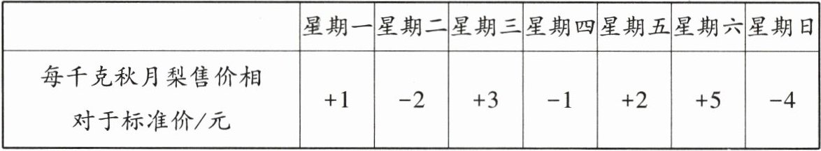 21. (9分)某水果超市新进了一批秋月梨,为了合理定价,先试行了7天机动价格,售价以每千克10元为标准价,超市记录了这7天秋月梨的销售价情况如下表。