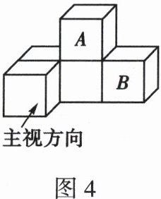 4. (2024·日照)如图4是由5个完全相同的小正方体搭成的几何体,如果将小正方体A放置到小正方体B的正上方,则它的三视图变化情况是(