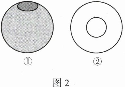 2. (2024·潍坊)某厂家生产的海上浮漂的形状是中间穿孔的球体,如图2①所示。该浮漂的俯视图如图2②,那么它的主视图是(