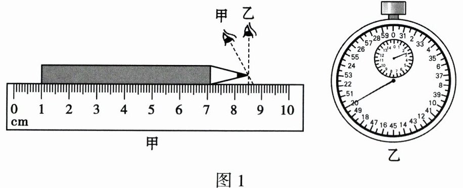 1. 如图 1 甲所示,用刻度尺测量铅笔的长度,读数方法正确的是