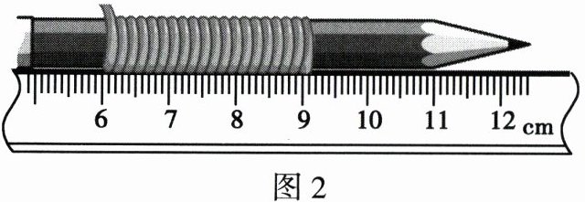 2. 小华同学为了测某一品牌导线的直径,用了以下办法:剪下一段导线后,把这段导线紧密单层地在一支铅笔上缠绕 20 圈,形成一个导线圈,再用一把刻度尺去测量这个导线圈的长度,测量情况如图 2 所示。这个导线圈的长度是