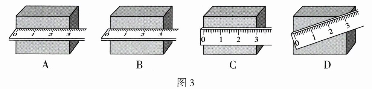 3. 如图 3 所示,用不透明的厚刻度尺测量一木块的长度,其中正确的是(