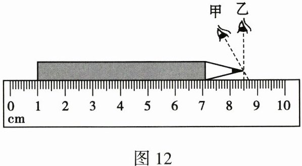 18. 如图 12 所示,小明用刻度尺测量铅笔的长度: