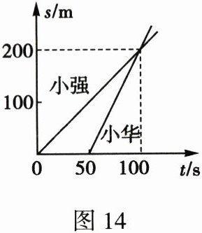 21. 跑步是一项全身都会被激发参与锻炼的运动,坚持锻炼,能够提升体力,因此越来越多的人爱上这项运动。图 14 是小强和小华两位同学在同一条直道上运动的路程—时间图像。请解答下列问题: