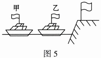 2. 如图 5 所示,由于风的缘故,河岸上的旗帜向右飘扬,河面的两艘船上旗帜的状态如图所示,则关于两艘船的运动状态的说法错误的是(
