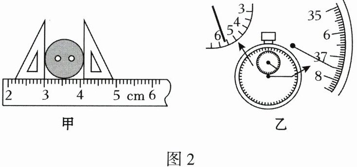 2. 如图 2 甲所示,被测纽扣的直径是