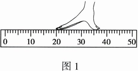 1. 如图 1 所示,小红同学用自制的刻度尺(刻度准确)来测量大拇指尖和中指尖之间的最大距离,她的刻度尺存在的缺陷是