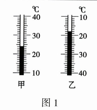 的规律制成的,里面的液体有的用酒精,有的用水银,有的用煤油。如图1所示,温度计甲的示数是24