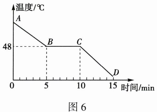 2.如图6所示是海波温度随时间变化的图像,已知海波的熔化温度是$48^{\circ}C$,则 (