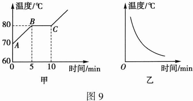 1.如图9所示,图甲是萘的熔化图像,图乙是塑料的凝固图像。由图像可知,塑料是