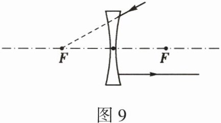 15. 请完成图 9 中光路图,并任意画出一条通过光心的光线。