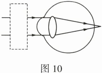 16. 请你在图 10 方框内填入能矫正视力的透镜。