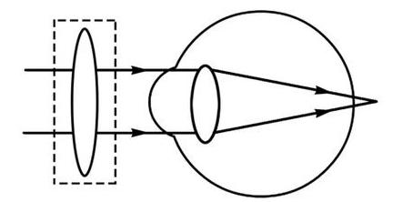 由图可知,光线经晶状体折射后,在视网膜前方会聚,说明该眼睛为近视眼,应佩戴凹透镜进行矫正,凹透镜对光线有发散作用,能使光线推迟会聚,让像成在视网膜上。