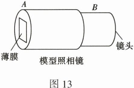 19. 如图 13,在自制照相机模型时,用硬纸板做两个粗细相差很小的纸筒,使一个纸筒刚好能够套入另一个纸筒内,并能前后滑动。在一个纸筒的一端嵌上一个焦距为 10 cm 的凸透镜。