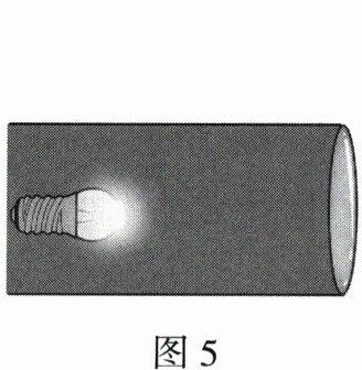 6. 为了进行光学实验,物理课外小组的同学需要自制一个平行光源。如图 5 所示,在硬圆纸筒的一端安装一个焦距为 10 cm 的凸透镜,纸筒的另一端安装一个灯泡。调节灯泡,当灯泡到凸透镜光心的距离满足条件