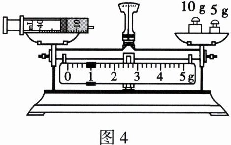 (2) 用注射器抽取 5 mL 盐水,用天平测得注射器和盐水的总质量,如图 4 所示,为
