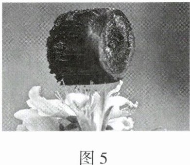 7. 如图 5 所示为我国研制的“全碳气凝胶”,它可以轻松地静止在桃花的花蕊上,其内部由碳纳米管和石墨烯共同支撑起无数个孔隙,充斥着空气,是目前世界上最“轻”的固体材料,这里的“轻”是指它的(