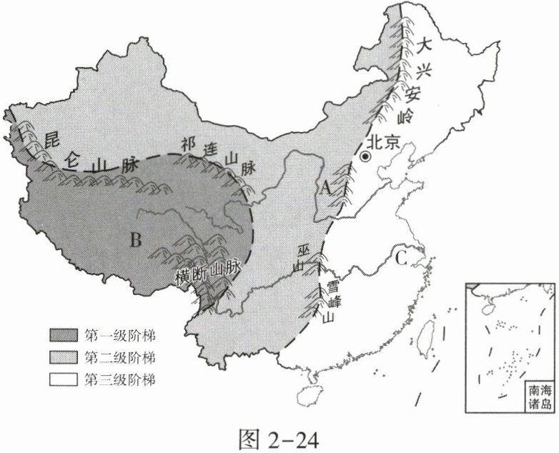 21. 某地理兴趣小组的同学们通过制作我国三级阶梯模型(图 2 - 24),探究我国地势特征对自然环境的影响。他们设计了如下方案,请和他们一起完成下列问题。(8 分)
