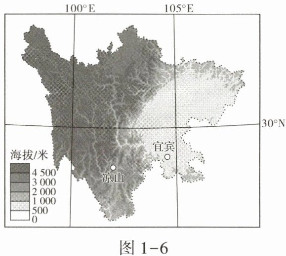 某电视剧以凉山彝区农村——谷莫村为故事背景,讲述彝族人民在精准扶贫政策的推动和政府的大力支持下,靠勤劳脱掉贫困帽子,实现幸福生活的故事。读凉山位置简图(图1-6),完成19~20题。