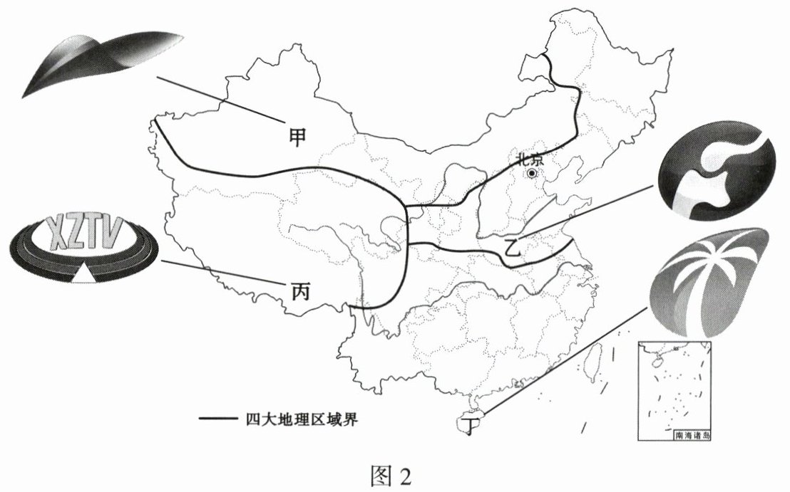 电视台的台标能反映地方文化特色。图 2 示意我国四个省级行政区位置及其卫视台的台标。读图,完成 3~4 题。