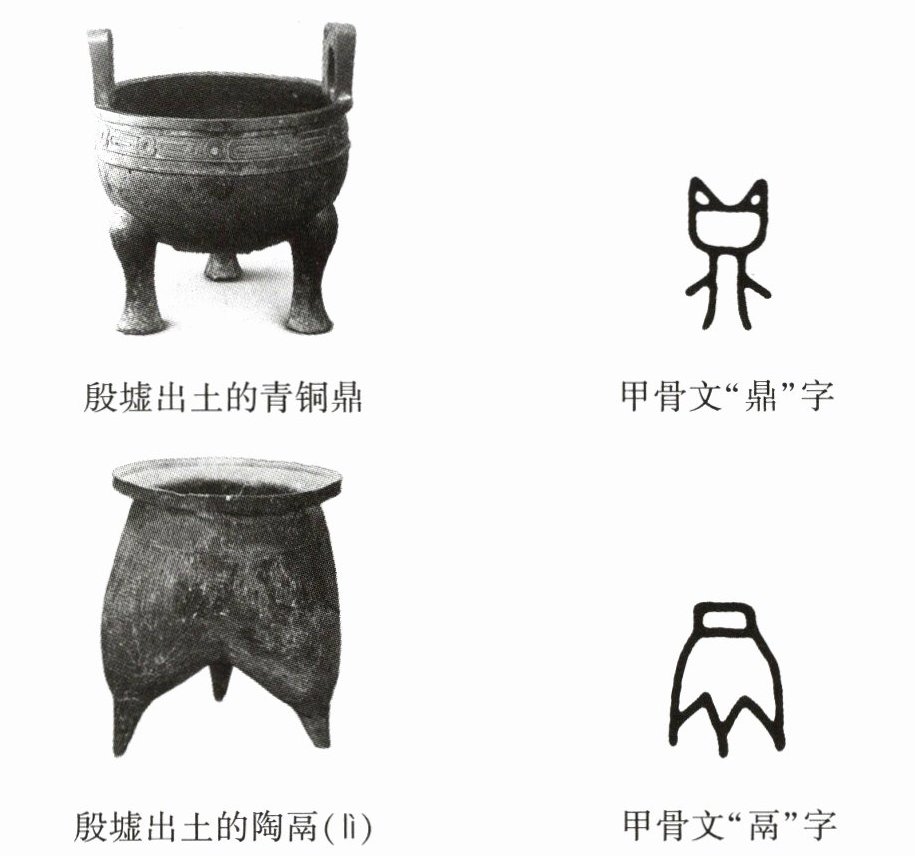 18. 殷墟出土的文物对人们识别甲骨文提供了一些帮助。通过下列图片,我们可以看出(