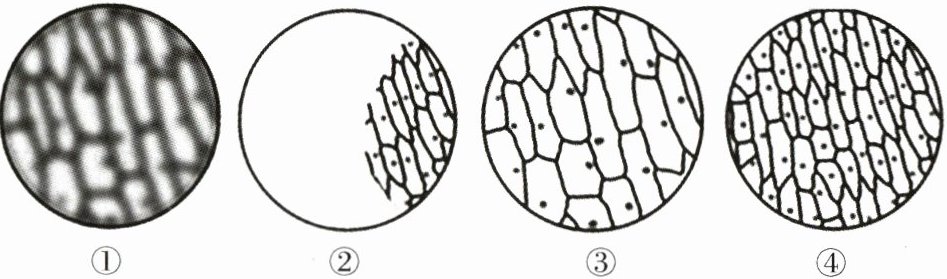 4. 下图为某同学用显微镜观察洋葱鳞片叶内表皮细胞临时装片时,看到的四个视野。下列叙述正确的是 (