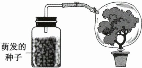 4.C【解析】二氧化碳是光合作用的原料,若打开开关,种子萌发产生的二氧化碳能到达植物的叶片,植物的光合作用增强,产生较多的氧气,使种子的呼吸作用也增强,产生的二氧化碳增多,A、B错误。种子在萌发过程中,呼吸作用旺盛,分解种子内的有机物,C正确。植物在光下进行光合作用,绿色植物的有机物不会减少,D错误。故答案为C。