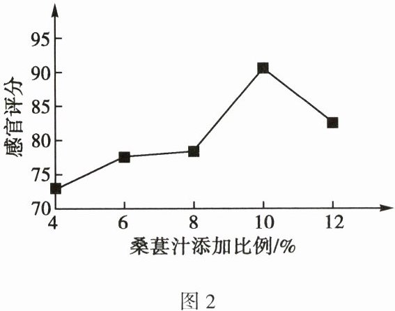 (3)分析图2可发现,酸奶感官评分随着桑葚汁添加比例的增加,呈