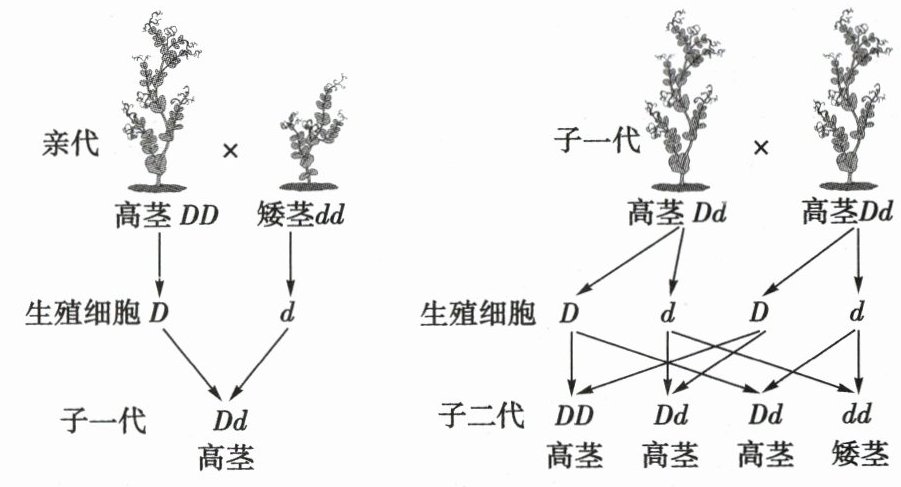 两种基因组成。(2) 子二代基因组成有3种,分别是DD(所占比例为