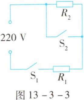 6. 图$13 - 3 - 3$是某款智能加热杯垫的简化电路图,$R_{1}$和$R_{2}$均为电热丝,智能加热杯垫有加热和保温两个挡位,加热功率为$40W$,保温功率为$10W$。若闭合开关$S_{1}$和$S_{2}$,则智能加热杯垫处于