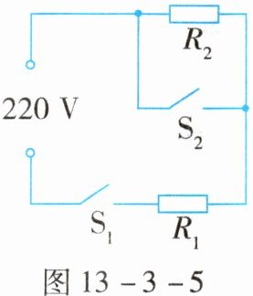 14. 图$13 - 3 - 5$是某电烤炉的简化电路图,小琳查看说明书后得知$R_{1}$、$R_{2}$均是电热丝,$R_{1}=44\Omega$,$R_{2}=66\Omega$,忽略温度对电热丝阻值的影响。只闭合开关$S_{1}$时,电烤炉处于
