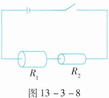 17. 如图$13 - 3 - 8$所示,将材料和长度均相同、横截面积不同($S_{1} > S_{2}$)的两根实心铁棒$R_{1}$、$R_{2}$串联接入电路,在它们的表面均匀涂上厚度一样的蜡,闭合开关一段时间后,会观察到(