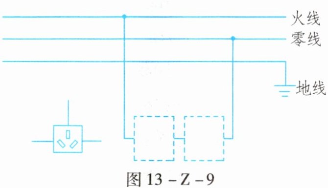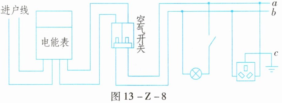 9. 图 13 - Z - 8 是某家庭电路的示意图。关于该家庭电路,下列说法正确的是(