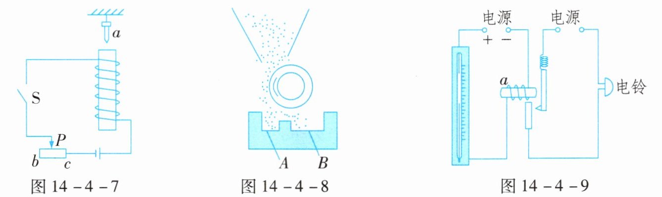 11. 如图 14 - 4 - 7 所示,a 是一根铁钉,用橡皮筋悬挂起来。当闭合开关 S 时,橡皮筋将会