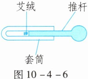 17. 图 10 - 4 - 6 是我国古代劳动人民的智慧结晶——取火器的模型图。把木质推杆迅速推入内壁光滑的牛角套筒内时,杆前端的艾绒立刻燃烧起来,这是通过